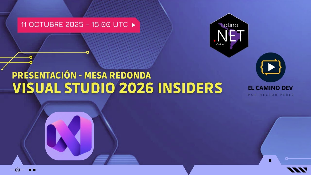 🎉 Latino .NET Online y El Camino Dev se unieron para presentar una mesa redonda dedicada al lanzamiento de Visual Studio 2026 Insiders, una nueva etapa en la evolución del desarrollo profesional con foco en inteligencia artificial, rendimiento y experiencia de usuario.